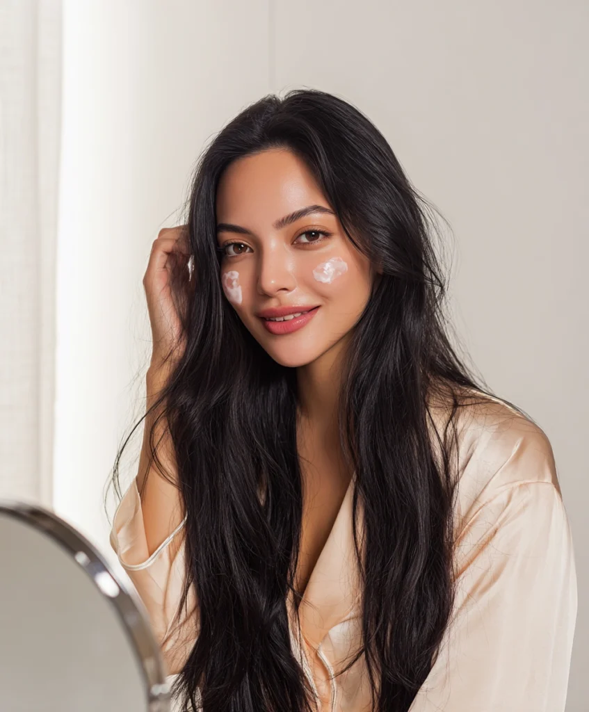 “Glass skin” refers to a complexion that looks crystal clear, poreless, and intensely hydrated. It’s not about covering flaws with heavy makeup—it’s about creating a natural glow that comes from healthy skin. The glass skin routine is a set of steps designed to deeply cleanse, hydrate, and nourish the skin so it reflects light smoothly, just like glass.